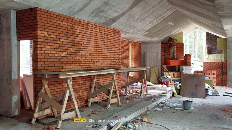 • наружные стены из облицовочного кирпича толщиной в 120 мм